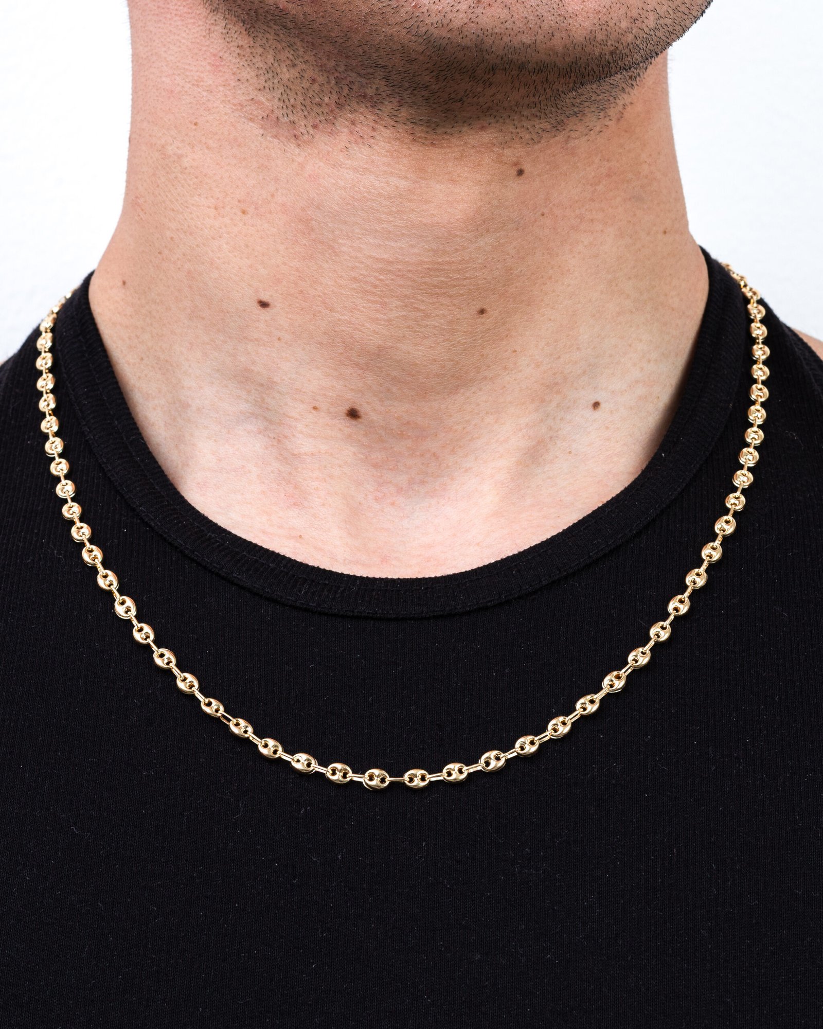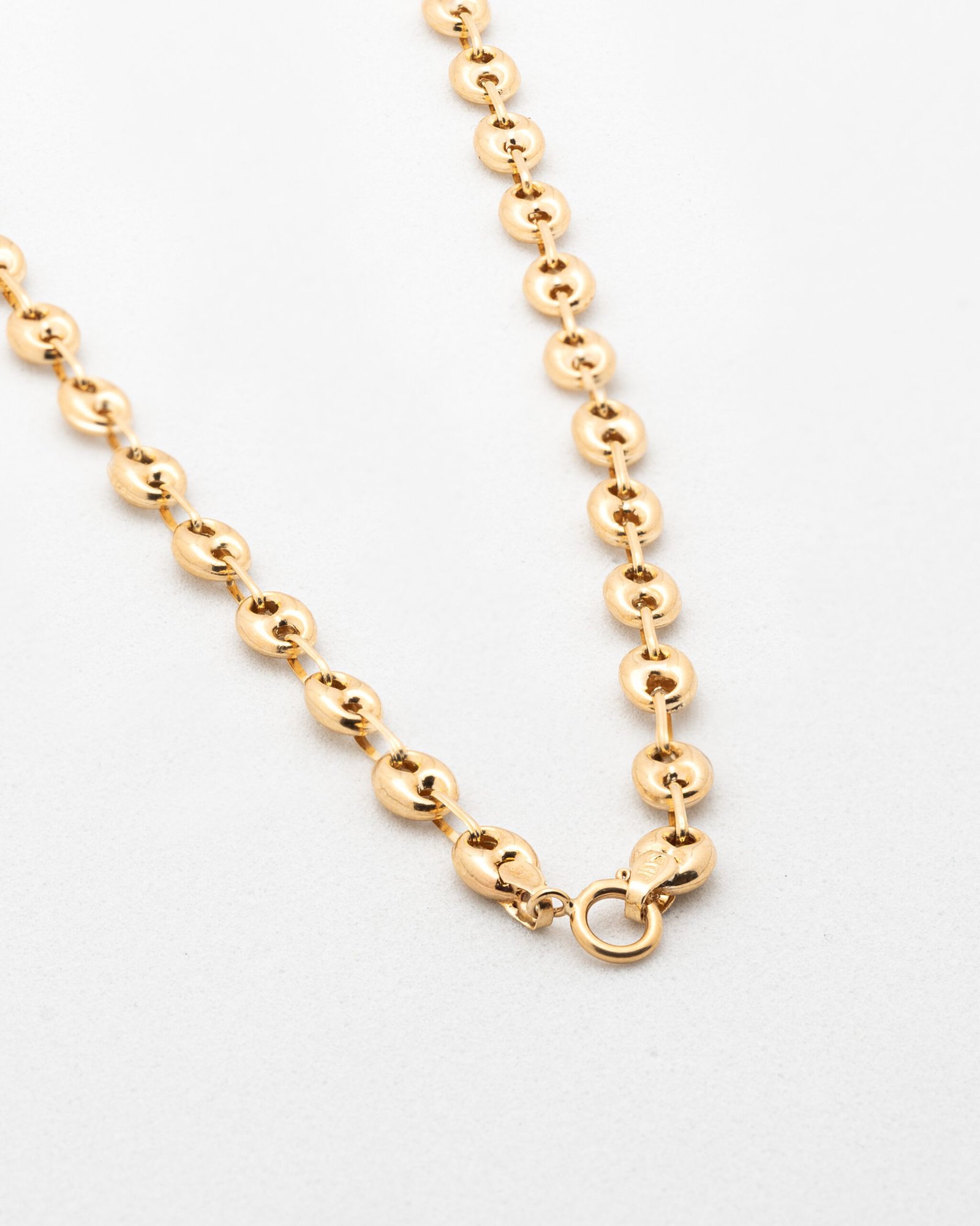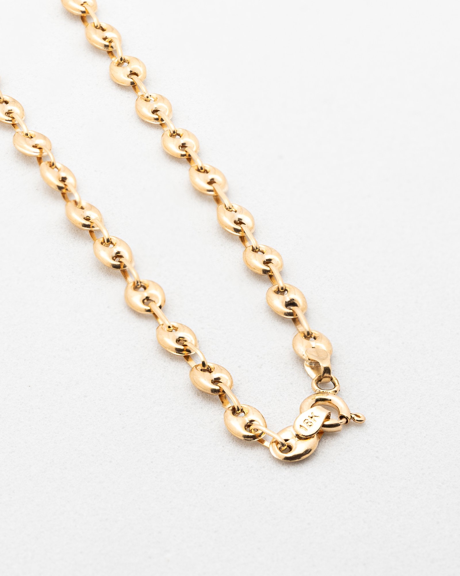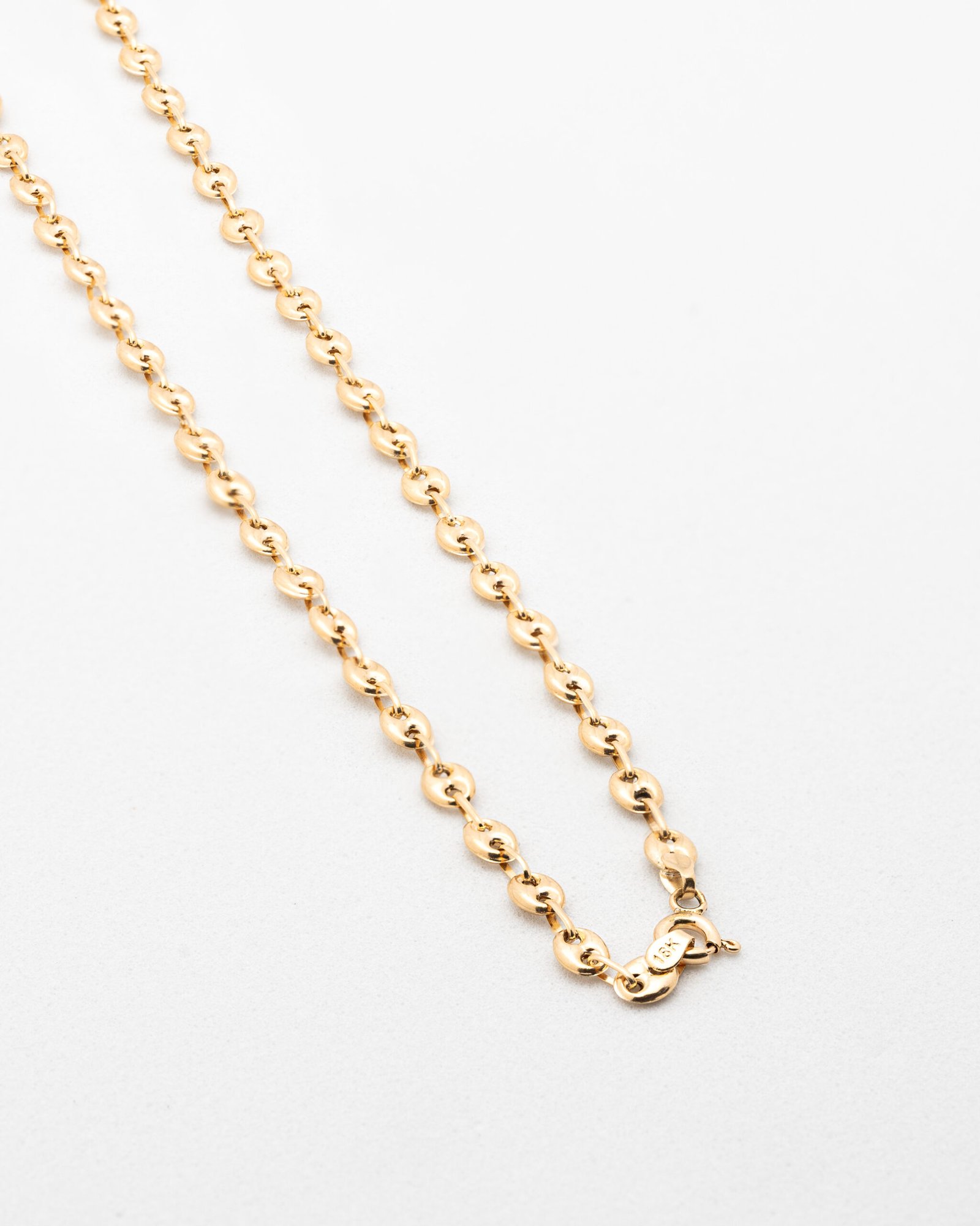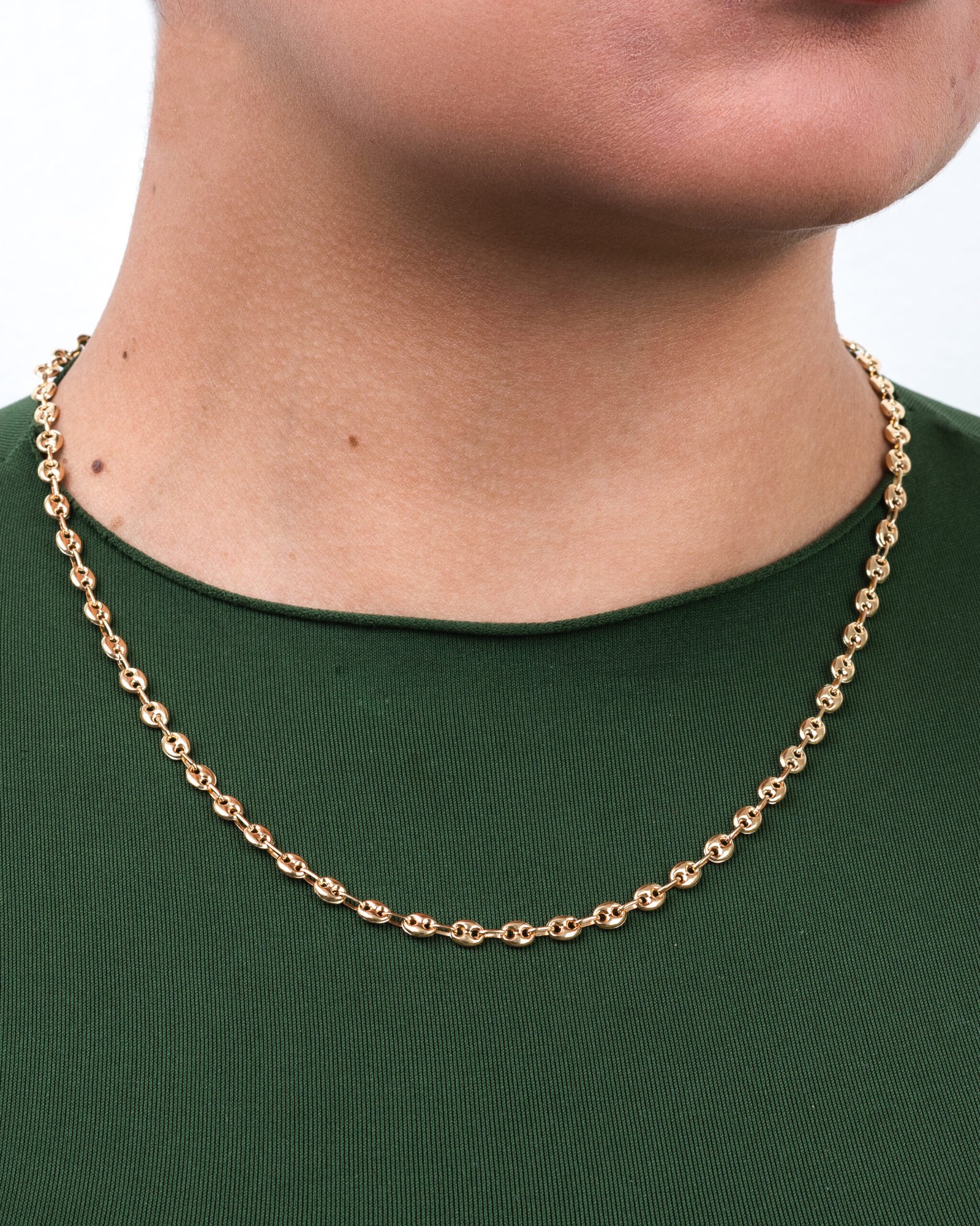 Una de las cadenas más elegidas por su diseño clásico y fácil de combinar. Sus eslabones ovalados crean una línea armoniosa que aporta brillo y estilo sin resultar recargada. Cómoda, resistente y muy versátil, es ideal para todo tipo de clientes y perfecta para usar a diario, ya sea sola o con dijes. Un básico imprescindible de joyería que nunca pasa de moda.