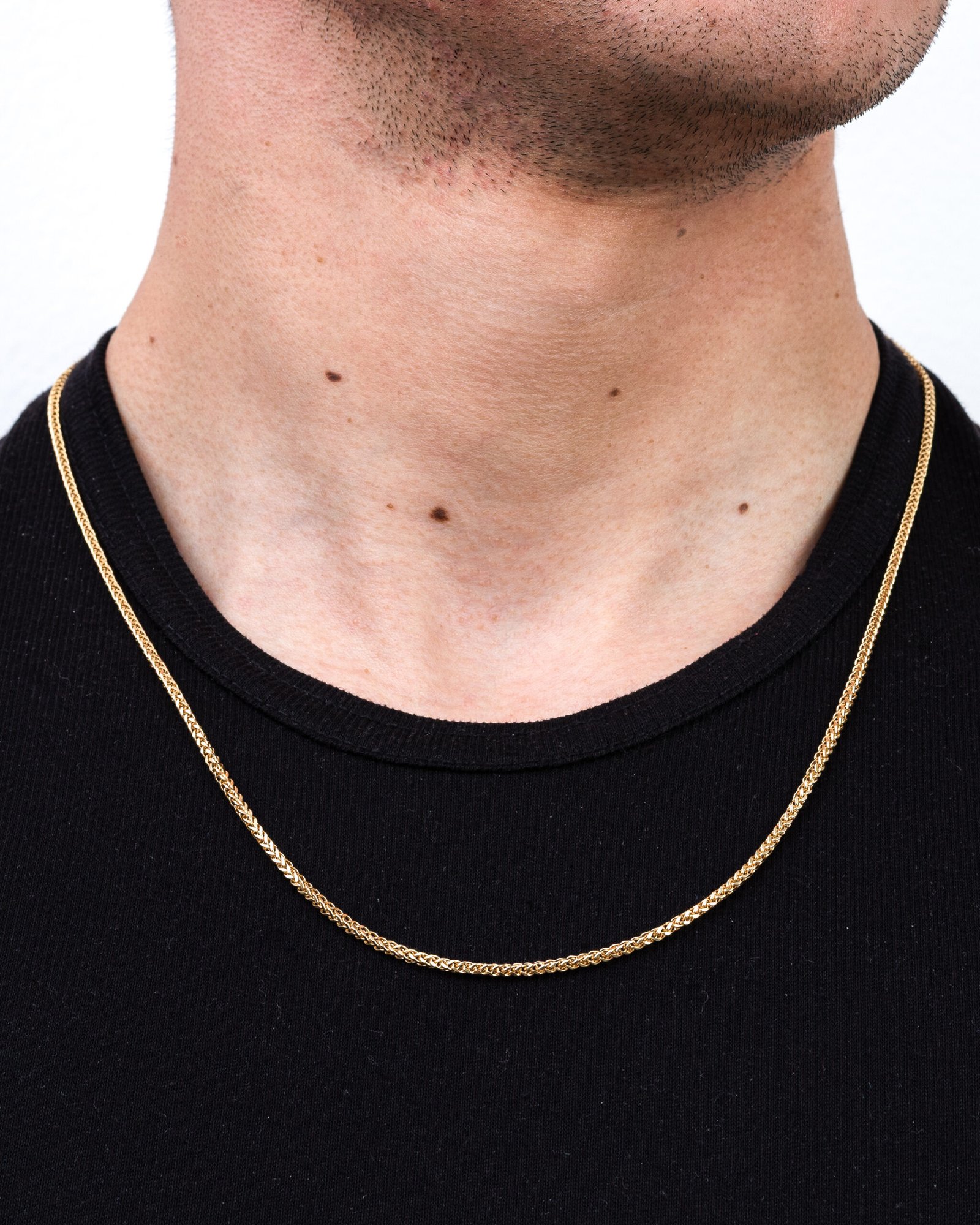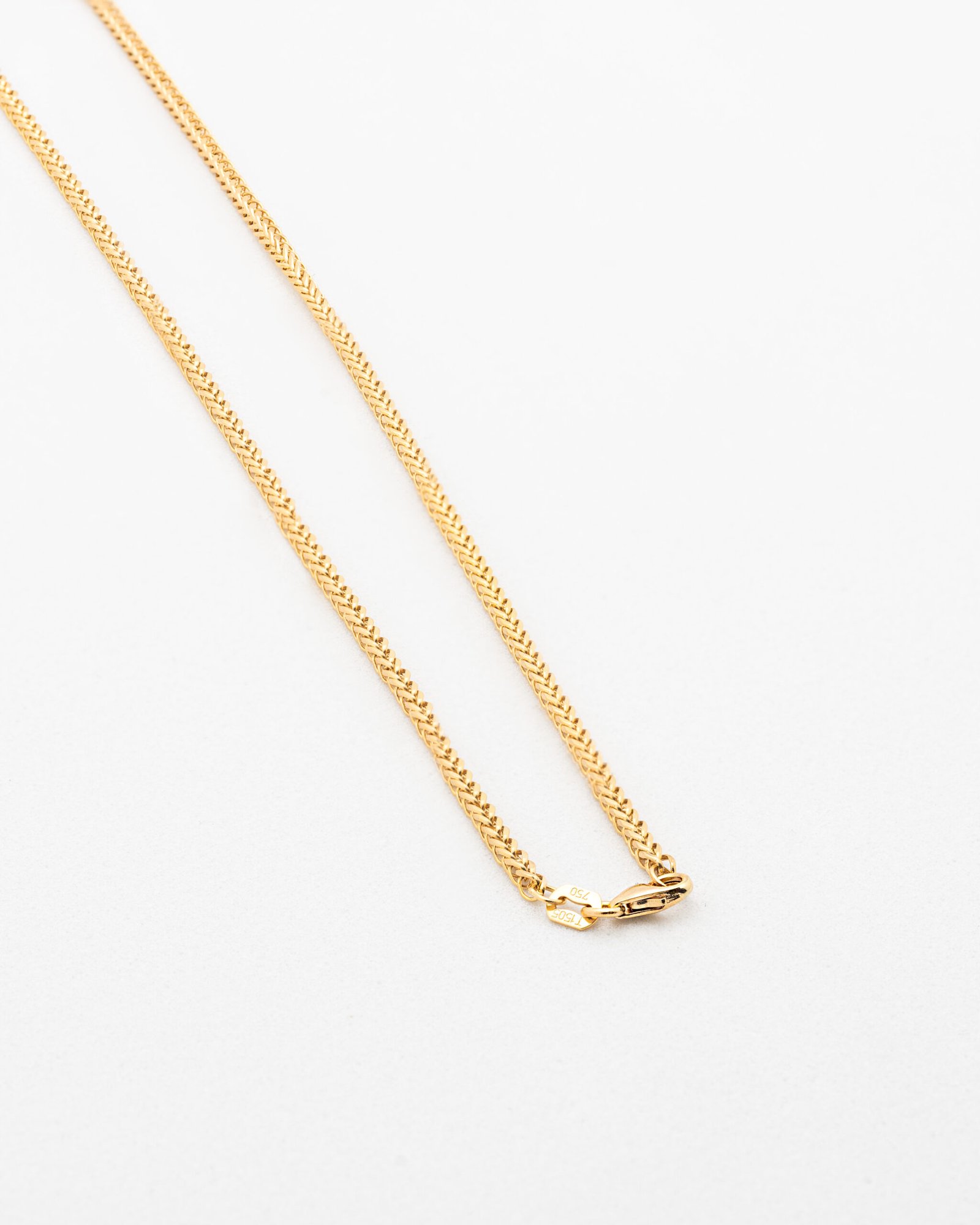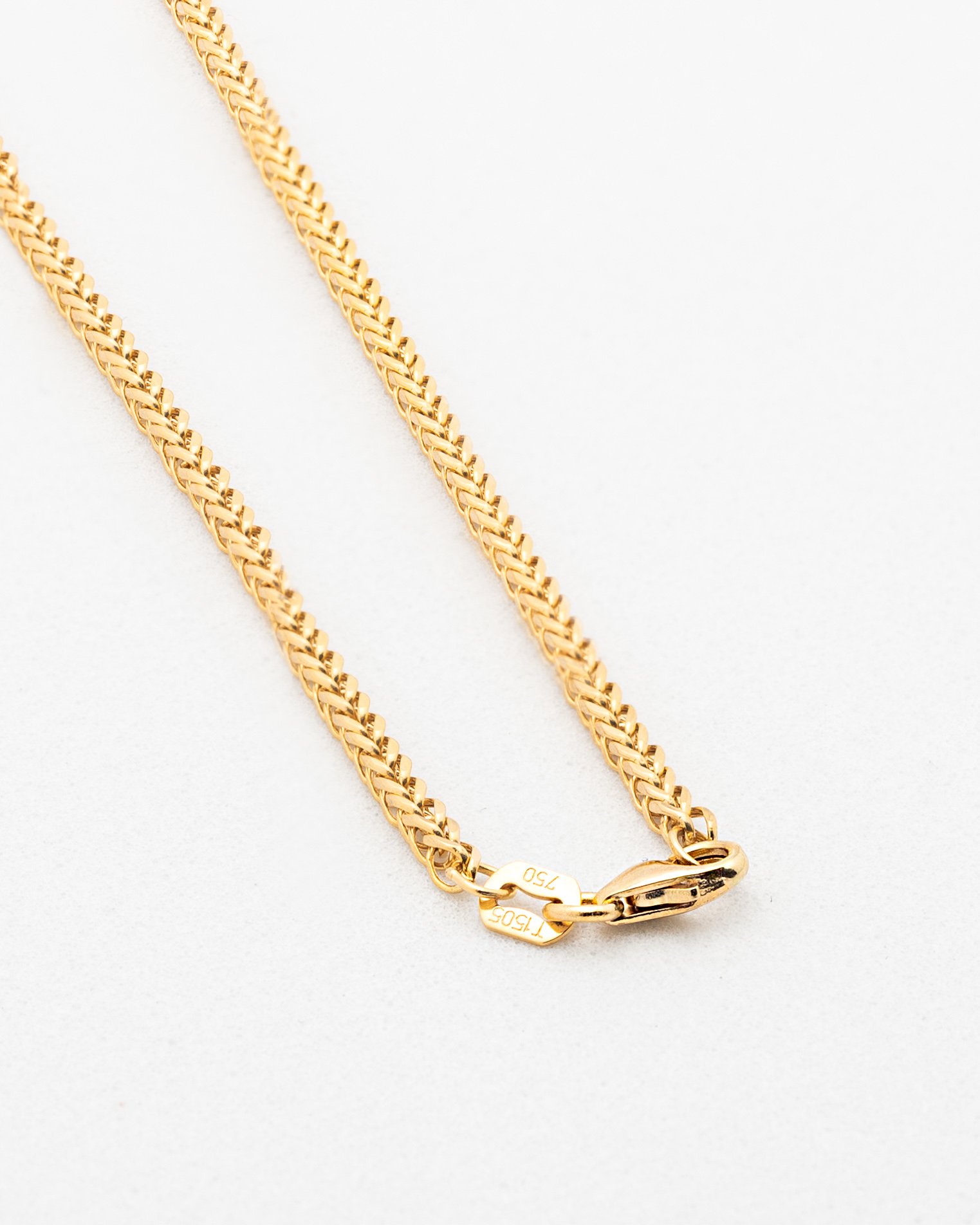 Diseño sólido y elegante que combina resistencia y estilo. Esta cadena se caracteriza por sus eslabones entrelazados en forma de “V” que crean un patrón uniforme, compacto y brillante, ofreciendo un acabado llamativo desde todos los ángulos.