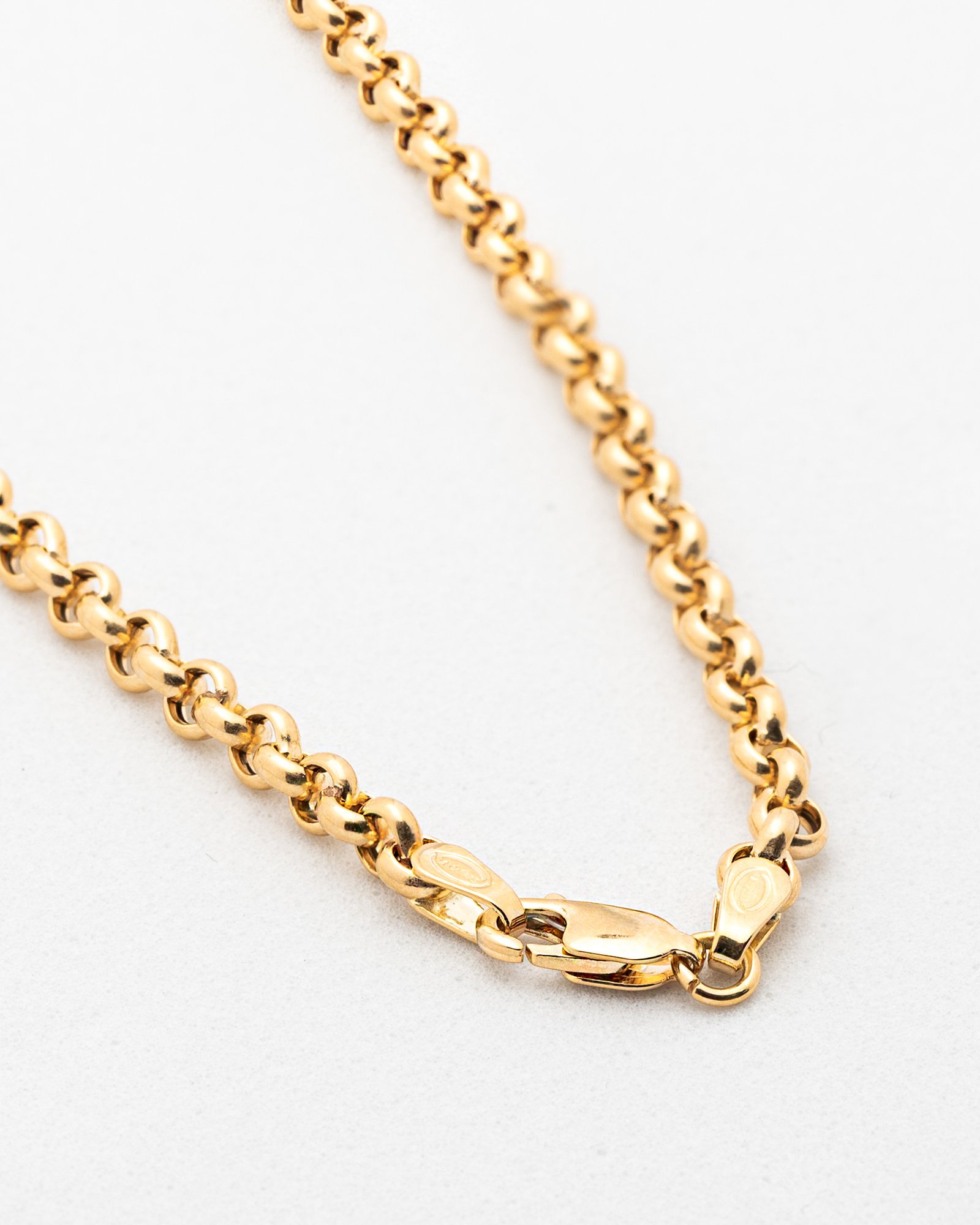 Clásica y versátil, la cadena Rolo maciza se caracteriza por sus eslabones redondos perfectamente ensamblados, que crean un diseño uniforme, elegante y de gran presencia. Su estructura sólida le brinda durabilidad y peso, garantizando resistencia al uso diario sin perder comodidad.